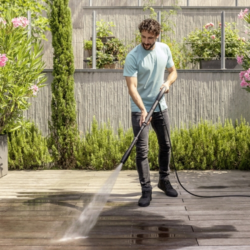 Впечатляющие параметры производительности делают минимойку высокого давления K 7 WCM идеальным решением для регулярного устранения сильных загрязнений. Её мощный двигатель водяного охлаждения гарантирует тщательную очистку дорожек, террас, садового инвентаря и даже автомобилей больших размеров. Для эффективной и тщательной очистки различных поверхностей в комплект поставки входят струйная трубка Vario Power, позволяющая регулировать давление простым поворотом наконечника, и грязевая фреза, формирующая вращающуюся точечную струю для устранения особенно стойких загрязнений. Встроенный фильтр для воды защищает насос от частиц грязи. Все поставляемые с аппаратом принадлежности можно удобно хранить на его корпусе.